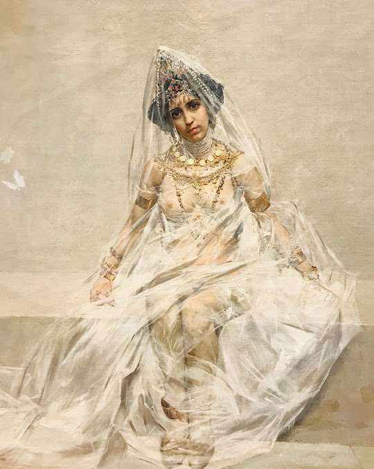 Above the sad harem wife,"By the order of the Sultan", by Antonio Fabrés followed by “Bugambilias” by Saturnino Herrán (1916) & the apparently tired “The Huntress of the Andes” by Felipe Santiago Gutiérrez.
