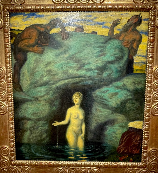Fairy tales can be erotic. Franz von Stuck`s "Quellnymphe von Faunen belauscht" (Well Nymph lurked by fauns)